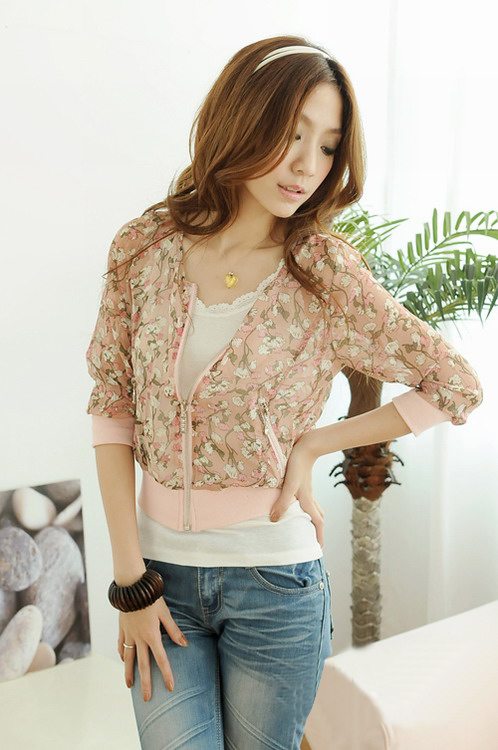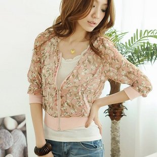珍珠蕾丝滚边拼接荷叶袖雪纺衫上...