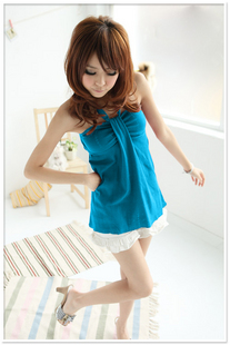 可爱雪花边交叉肩带小背心/吊带